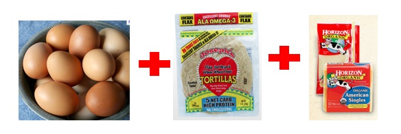 3.) Egg roll-ups - In a small to medium-size whole wheat grain or plain tortilla, roll-up two scrambled eggs along with a slice of your child's favorite cheese or soy cheese and Voila! you have a filling breakfast that's packed with lots of protein and energy all bundled together. With this one, I like to use Horizon Organic American Cheese singles and Joseph's Whole Wheat Tortillas.